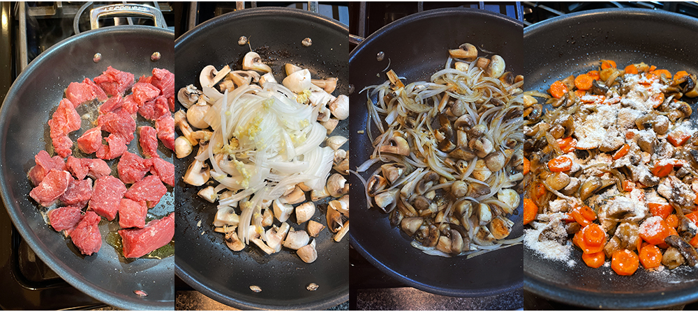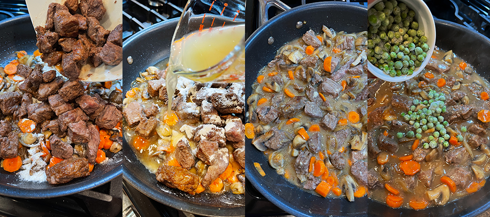 - Vierte el vino tinto (si estás utilizando) y deja que se reduzca a la mitad.