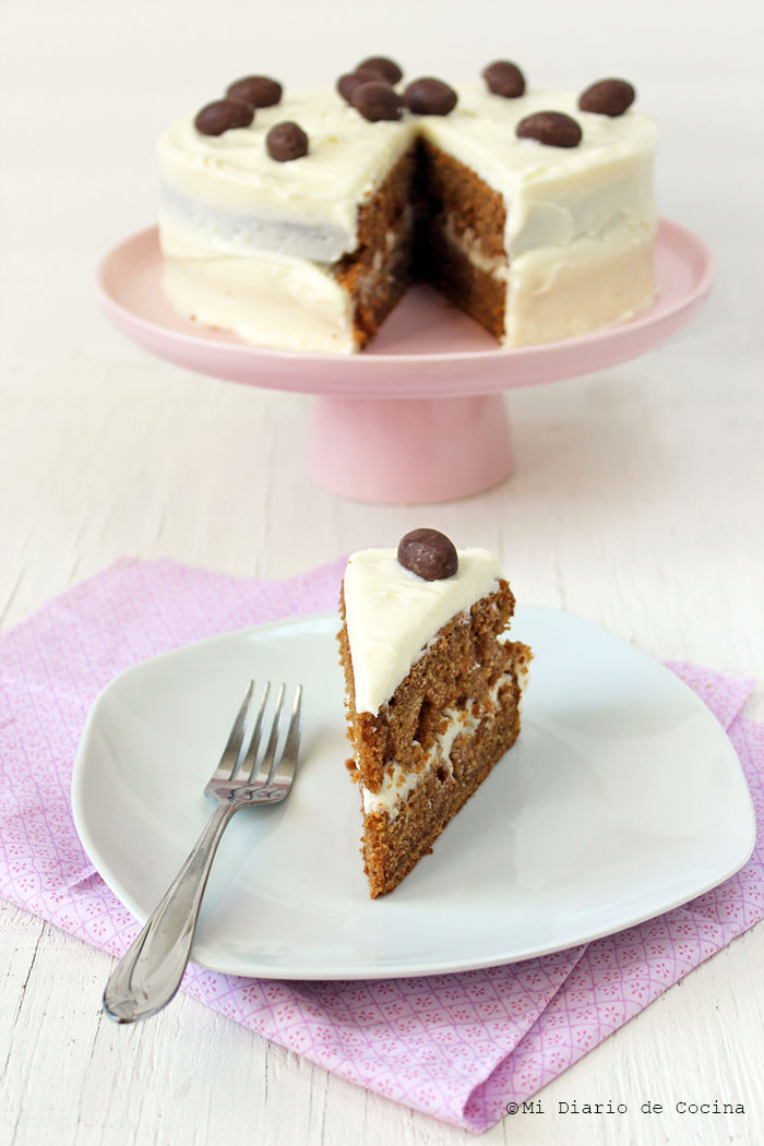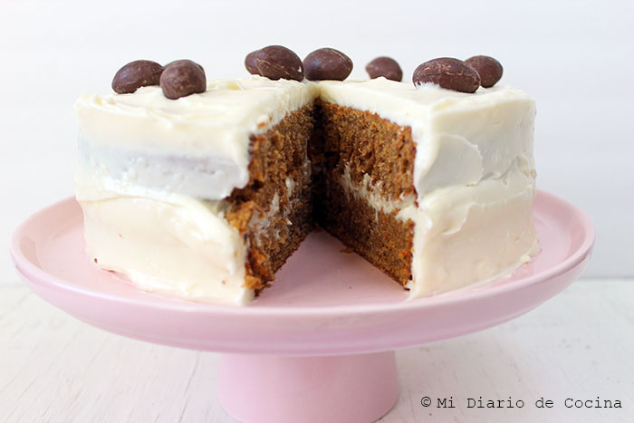 En este mes de abril les traigo esta maravillosa Torta de zanahorias, una versión un poquito diferente a la que ya tengo en el blog. De todas formas quise seguir en la línea de lo tradicional en cuanto al tipo de relleno que es este típico froting con queso crema, la verdad que la mezcla queda deliciosa, sin embargo por los motivos que sea no puede usar o adquirir queso crema, también pueden ocupar crema para batir y la endulzan con azúcar flor. Los bordes de la torta la pueden dejar así sin nada o agregarle nueces picadas lo cual le da un toque exquisito.