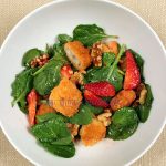 Ensalada de espinacas, pescado o pollo, frutillas y nueces