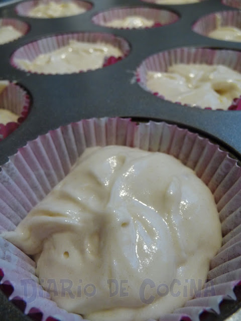 Vaciar a los moldes estos previamente puestos con moldes de papel para la ocasión. Llenar con 3/4 de la mezcla.