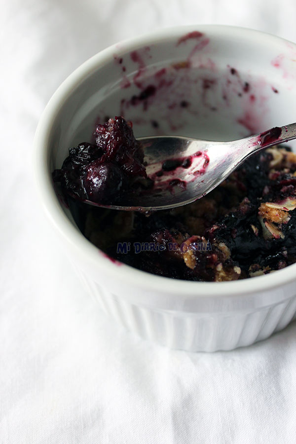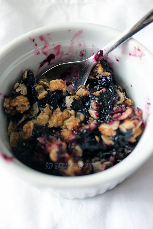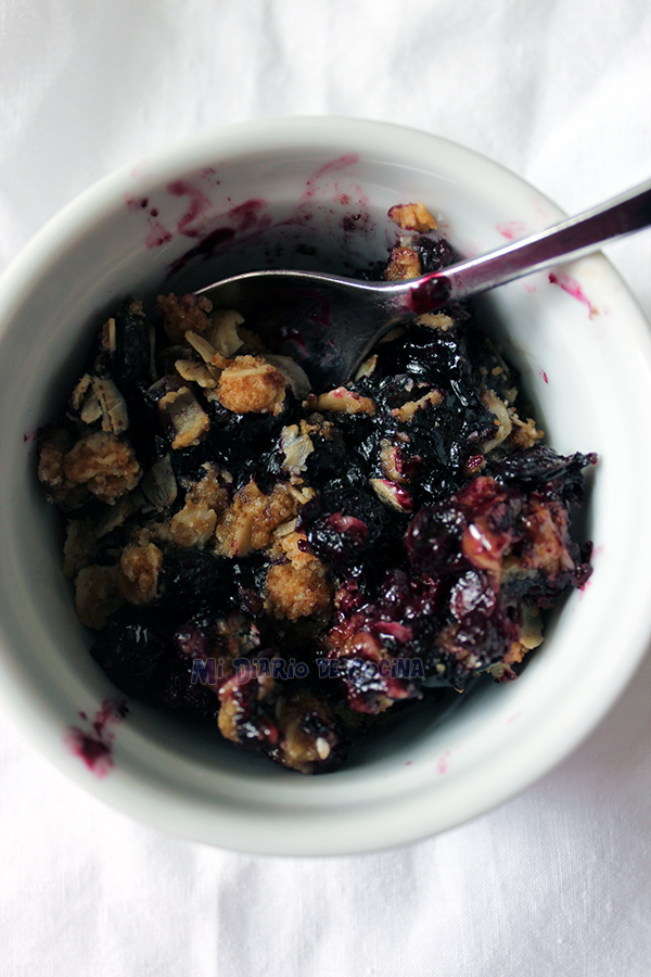 Si hay algo que me agrada del verano es la temporada de arándanos y de berries en general. Hay tantos postres que podemos hacer, aparte de disfrutar la fruta así tal cual. Y bueno, aproveché este verano de comprar arándanos extras para ir congelándolo y así tener en la temporada de otoño e invierno. Me encanta también acompañar mi avena matutina con arándanos, o hacerles helado de yogurt con arándanos a mis niños, y así podría seguir. Pero hoy les traigo un sencillo y rico postre de Crumble de arándanos.
