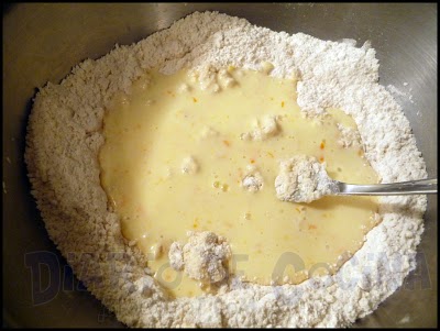 - En otro bol mezclar el buttermilk (o yogurth ya diluído en un poco de leche), con el huevo y la ralladura de naranja. Luego unir bien ambas mezclas.
