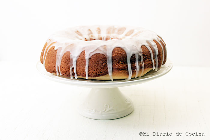 - GLACÉ (opción 2): en un bol mezclar el azúcar flor con el jugo de limón, integrar bien y rociar sobre el queque una vez que esté frío.