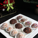 - Agregar el resto de las galletas en polvo. Unir bien y formar bolitas, para luego pasarlas por virutas de chocolate y de colores.