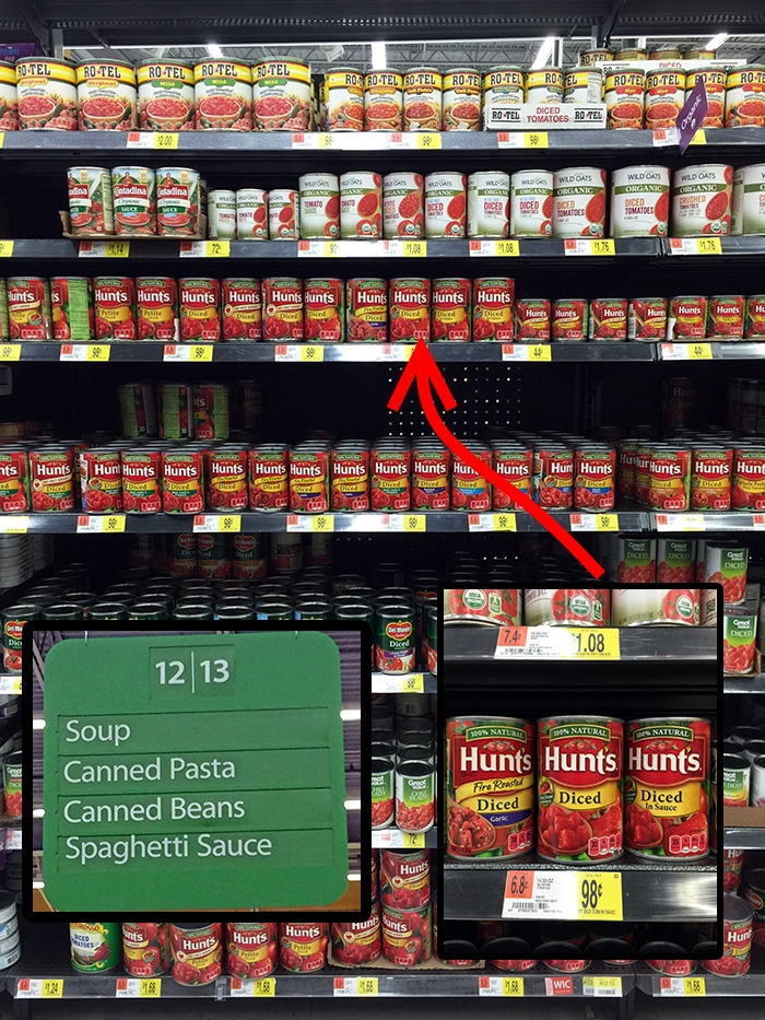 Cuando decidí hacer esta receta para la cena, me llevé a mi hijo mayor para que me acompañara al supermercado Walmart de nuestro vecindario. Allí fue muy fácil de encontrar todos los ingredientes que necesité para realizar este pastel, pero además di con una variedad muy amplia de productos Hunt’s. No me podía decidar con cual hacer el pino, así que me llevé tres tipos de tarros de tomates. Finalmente opté por los tomates que vienen en cubos (diced). Si se fijan en la sección de productos de pastas, legumbres y salsas, podrán encontrar los productos Hunt’s.