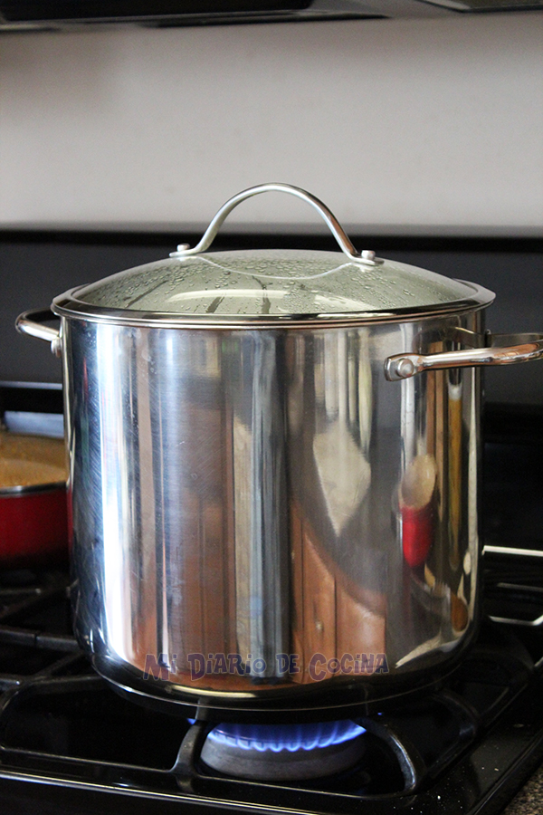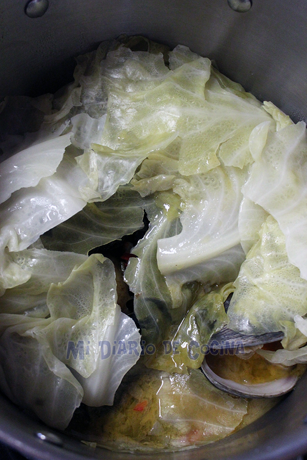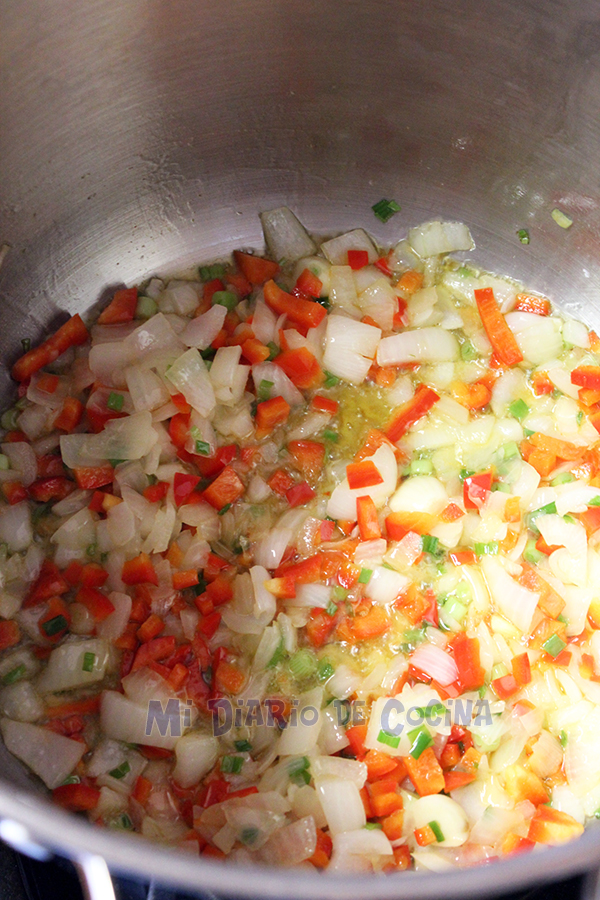 - Luego añadir el caldo. Mezclar y dejar cocinar unos 20 minutos.