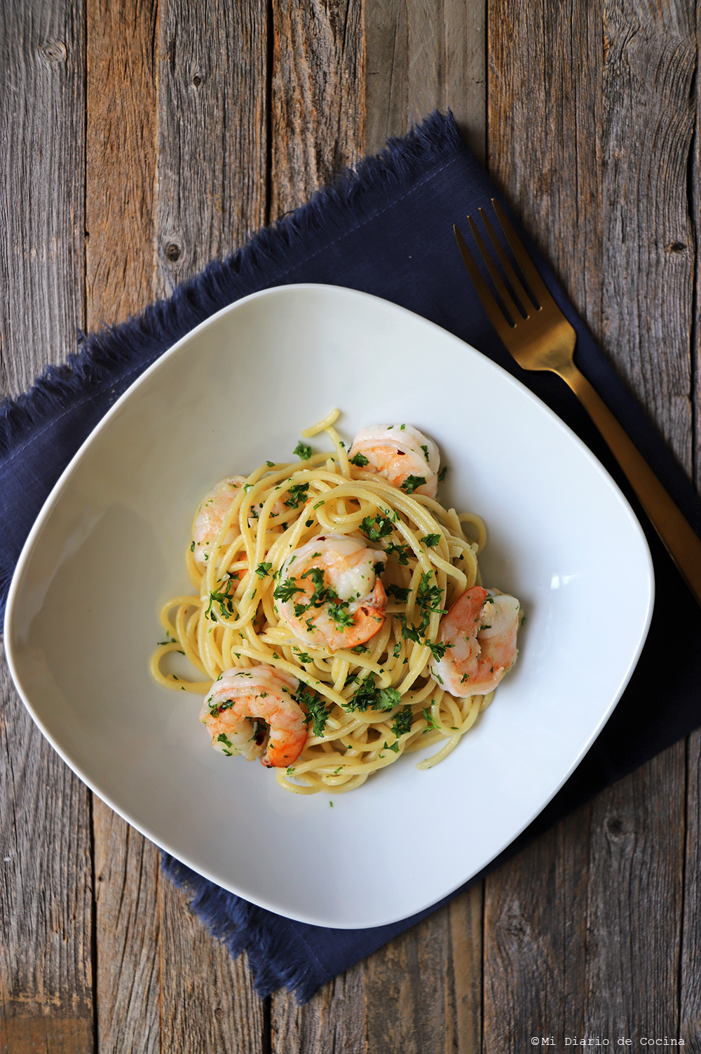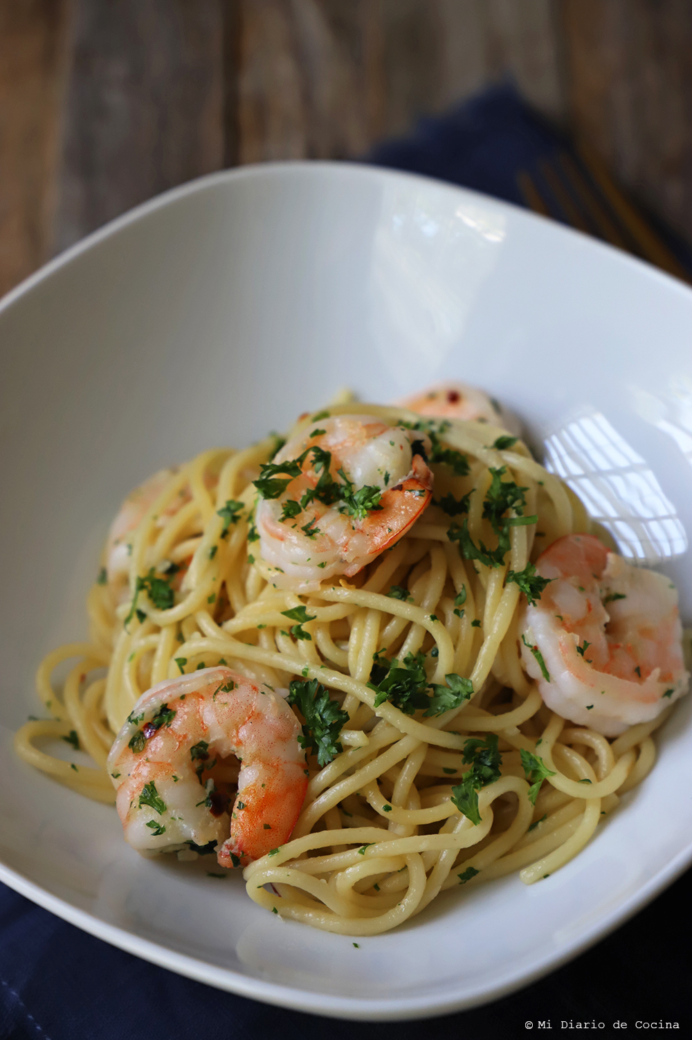 Camarones con pasta de arroz