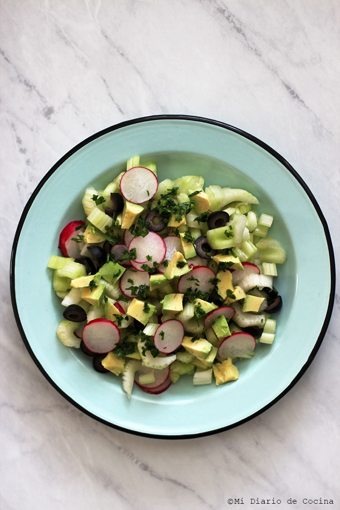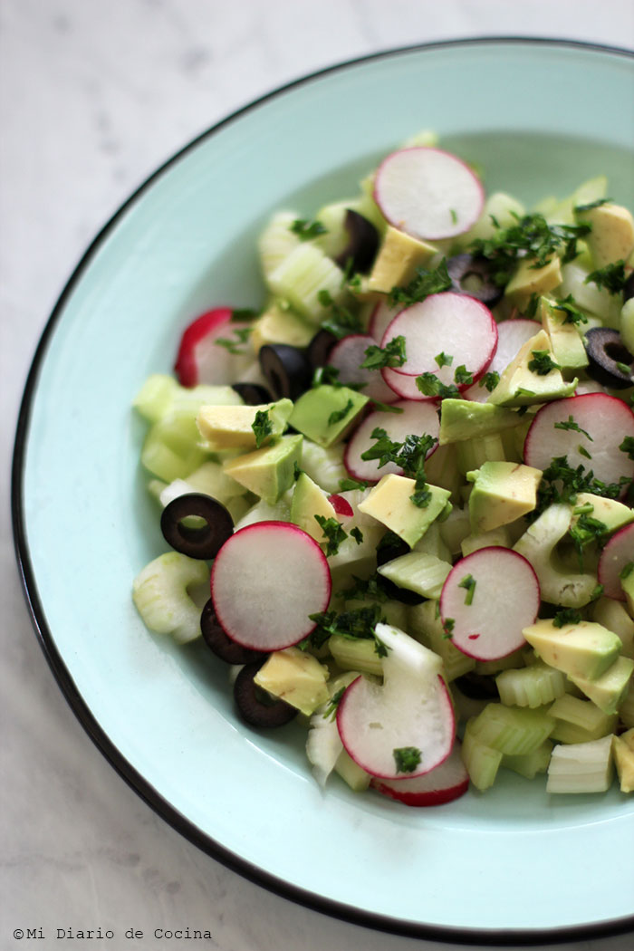 - Rectificar sabores y enseguida agregar la palta picada en cuadros a la ensalada.