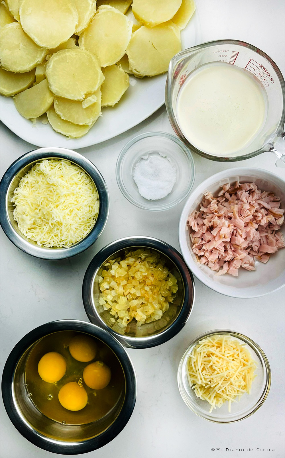 El pastel de papas, queso y jamón es una combinación de ingredientes sencillos pero sabrosos lo convierte en una opción ideal para cualquier ocasión, ya sea un almuerzo familiar o una cena reconfortante en un día lluvioso. La base del pastel es, por supuesto, la papa. Cocida y presentada en láminas gruesas. El queso, que puede ser del tipo que prefieras, en esta ocasión utilicé una combinación de queso mozzarella y parmesano. El jamón, por su parte, introduce un componente salado que contrasta perfectamente con la dulzura natural de las papas.