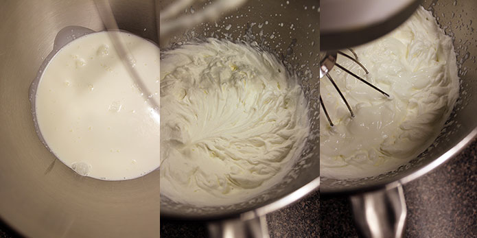9. Mientras tanto hacer el frosting, batiendo el queso crema, luego añadir la mantequilla, esencia de vainilla y poco a poco el azúcar flor.