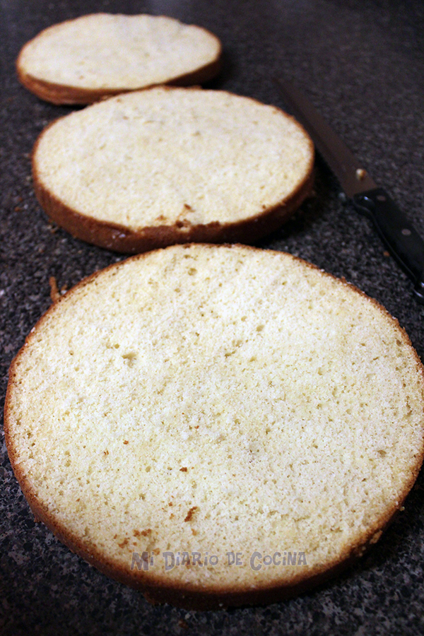 10. Cuando el bizcocho esté listo, dejar enfriar por completo y luego rellenar con el frosting.